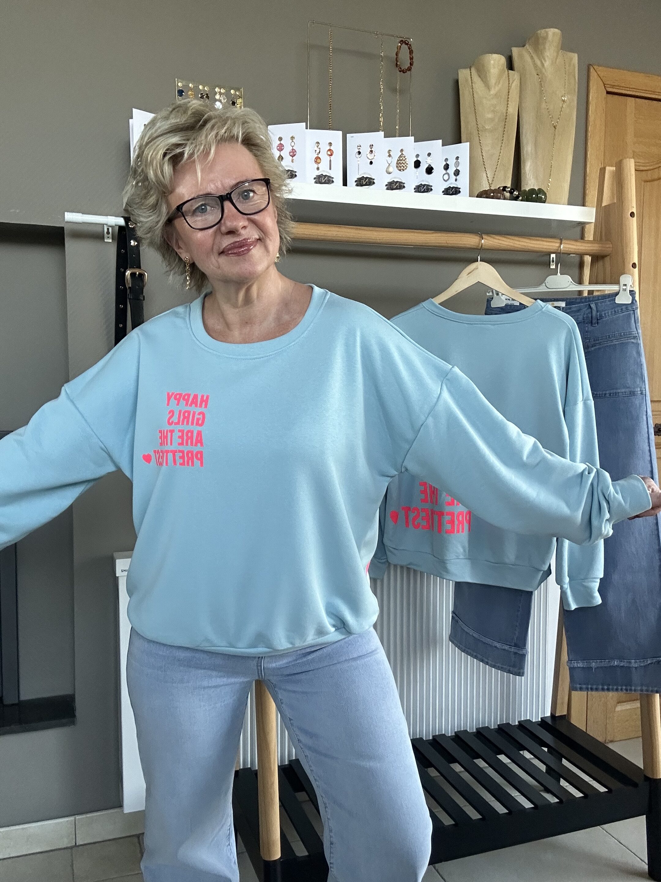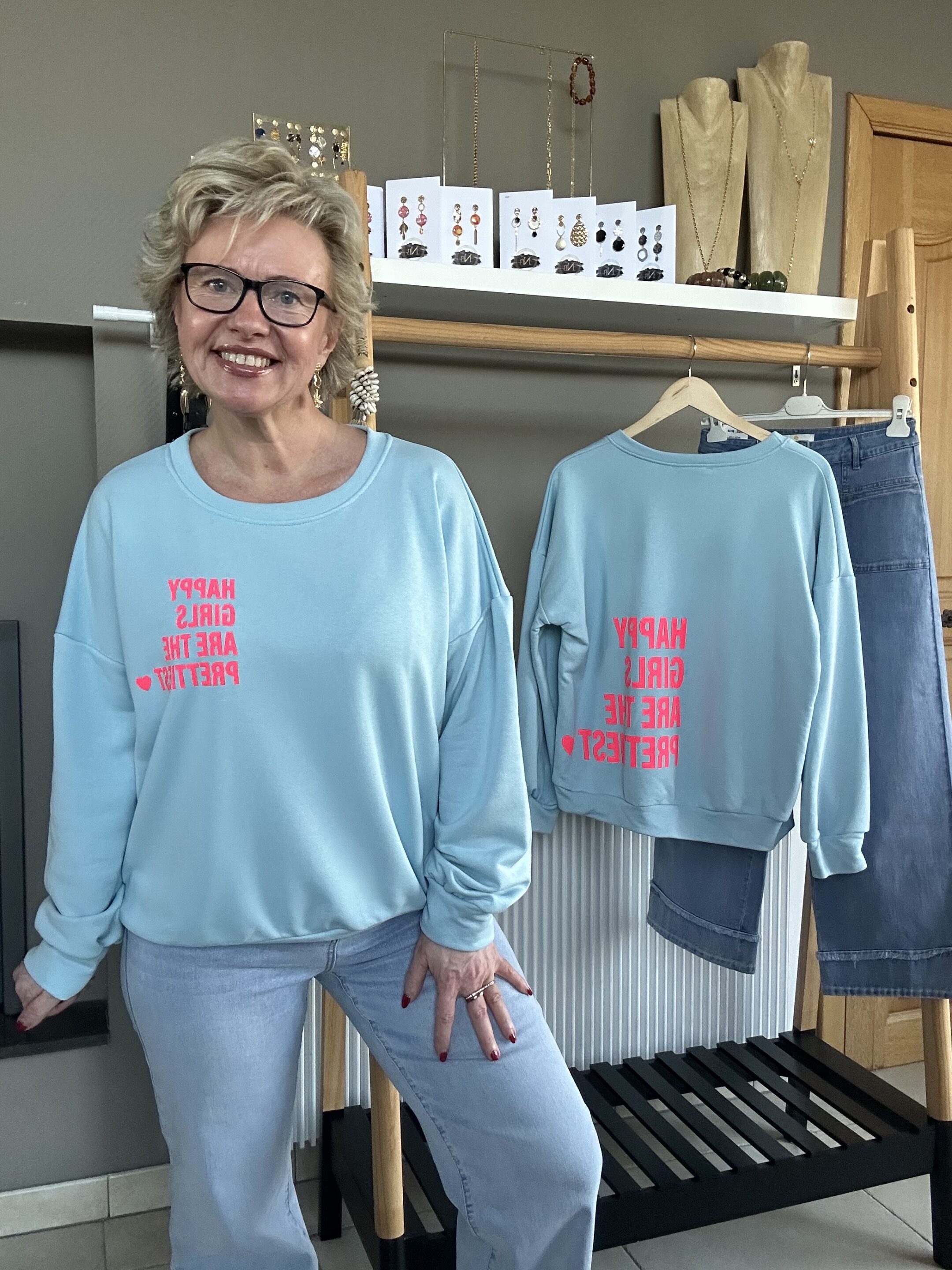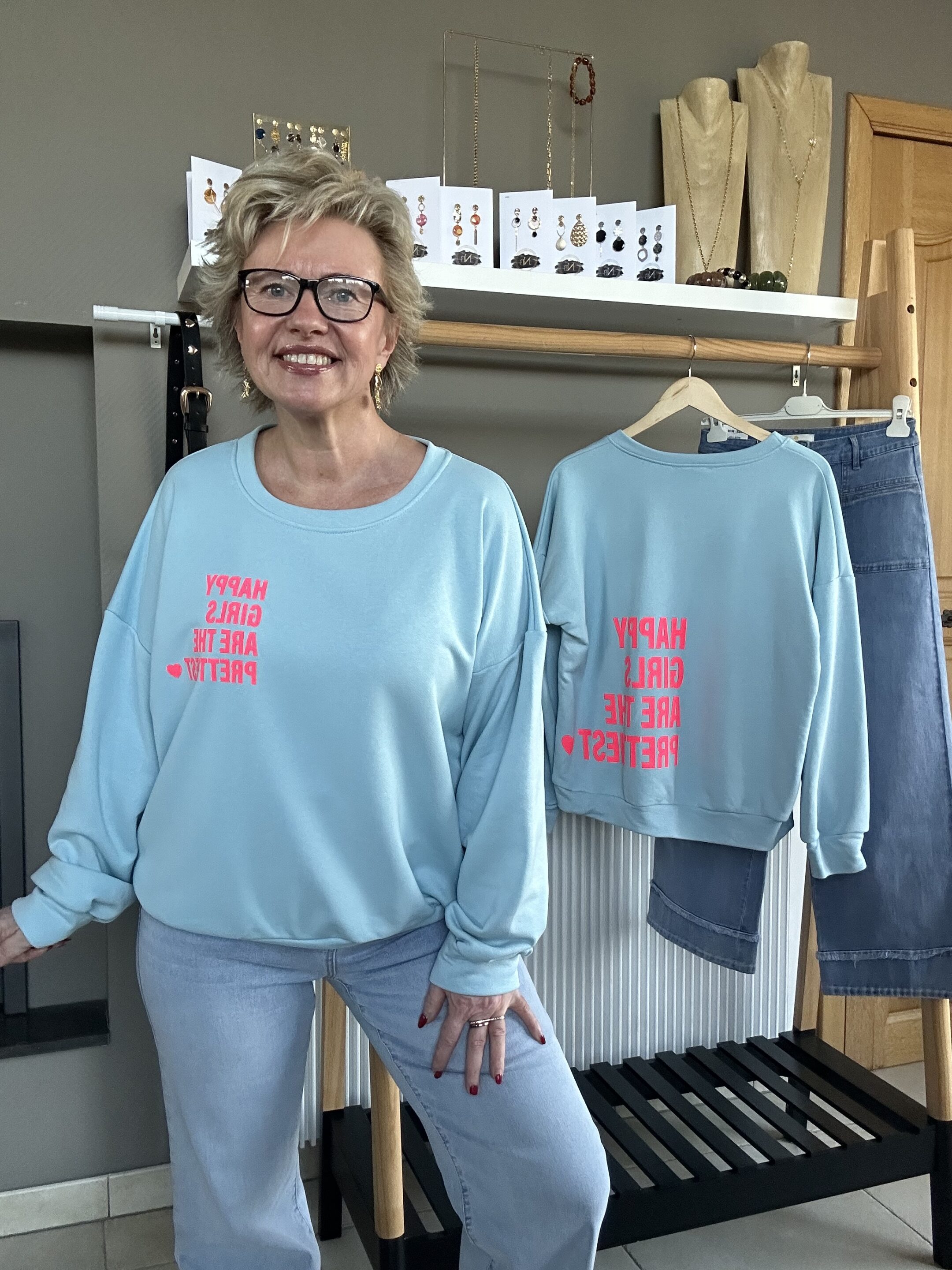 Sweat col arrondi – inscription couleur contrastante sur la poitrine et dans le dos HAPPY GIRLS ARE THE PRETTIEST